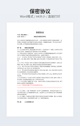 【特殊限制】设计师仅对作品中独创性部分享有著作权,对作品中含有的国旗、国徽等政治图案不享有权利,仅作为作品整体效果的示例展示,禁止商用。 相关关键词: 保密 协议书