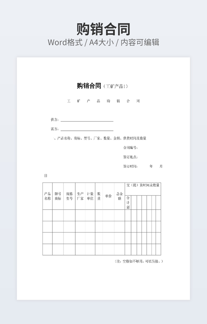 本作品内容为购销合同下载,大小为36.5KB,作品为高清大图模板,格式为doc, 属于购销合同模板,作品模板源文件下载后可用编辑替换,模板中如有人物画像仅供参考禁止商用。小Q办公网-提供简历,PPT,Word,Excel优质模板素材下载模版平台,拥有海量的工作总结、竞聘求职、年终颁奖、计划书等。 通过小Q办公网下载购销合同模板源文件编辑修改源文件文字和图片即可使用。