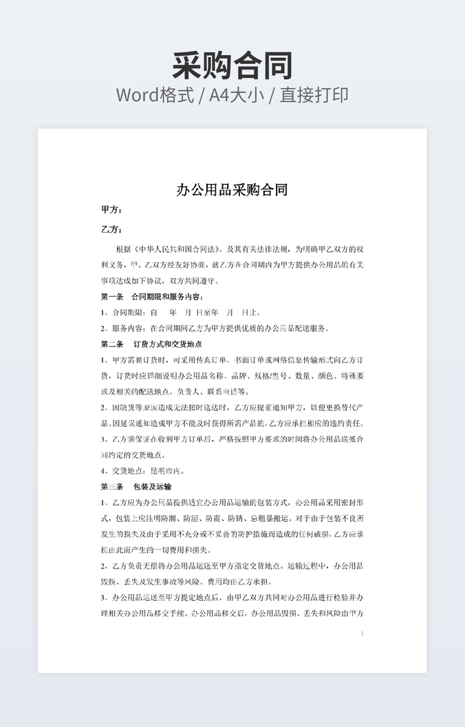 本作品内容为钢材材料采购合同范本下载,大小为24.02KB,作品为高清大图模板,格式为doc, 属于采购合同模板,作品模板源文件下载后可用编辑替换,模板中如有人物画像仅供参考禁止商用。小Q办公网-提供简历,PPT,Word,Excel优质模板素材下载模版平台,拥有海量的工作总结、竞聘求职、年终颁奖、计划书等。 通过小Q办公网下载采购合同模板源文件编辑修改源文件文字和图片即可使用。