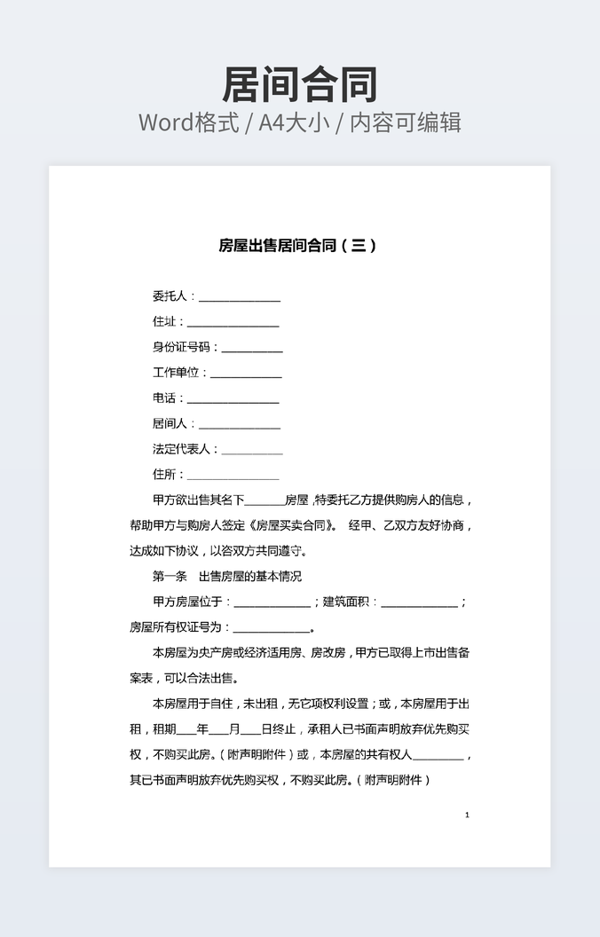 【特殊限制】设计师仅对作品中独创性部分享有著作权,对作品中含有的国旗、国徽等政治图案不享有权利,仅作为作品整体效果的示例展示,禁止商用。 相关关键词: 房地产 居间 合同范本 合同 精选
