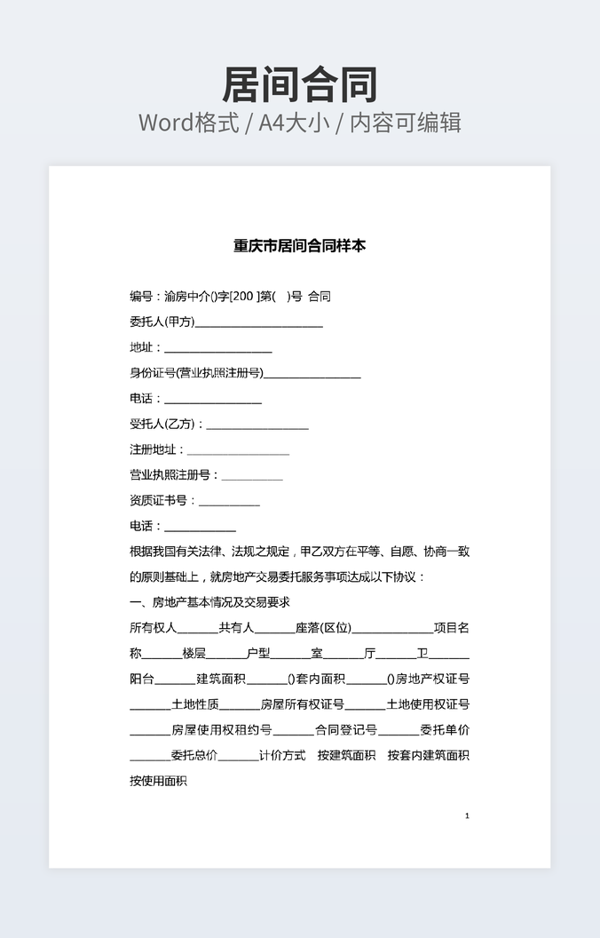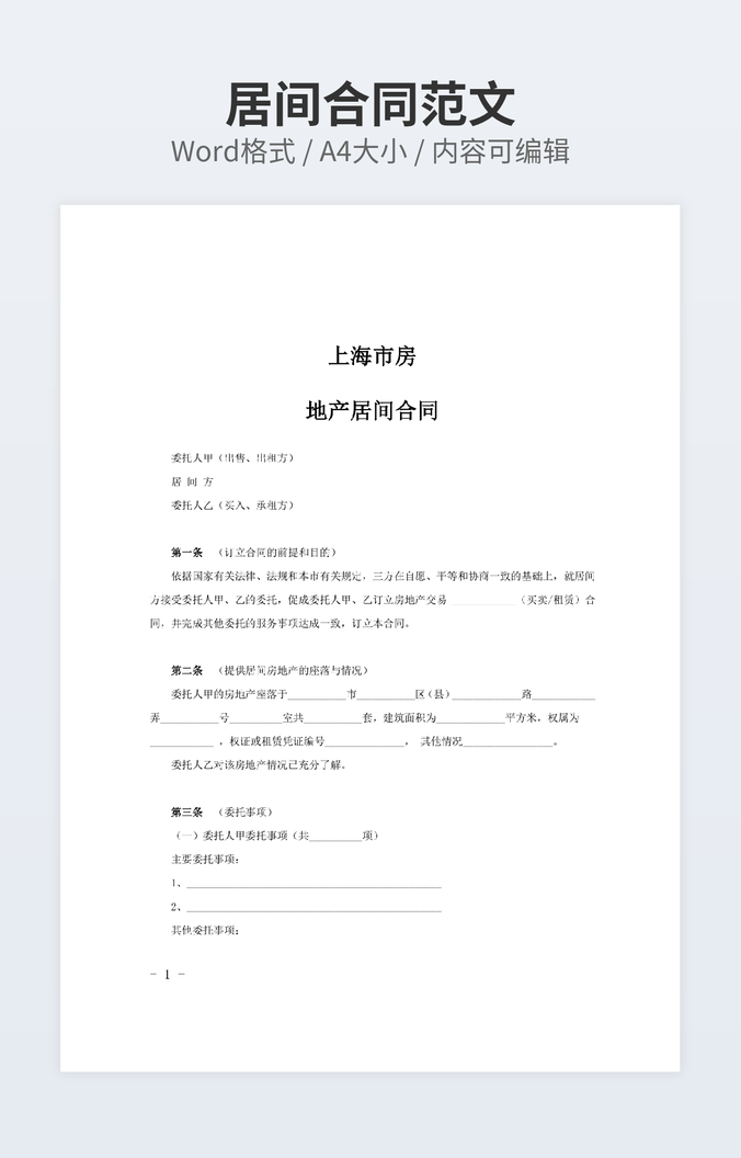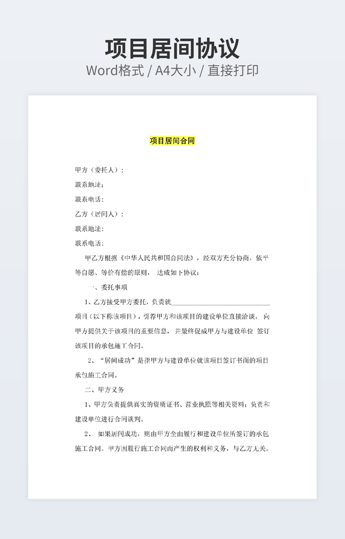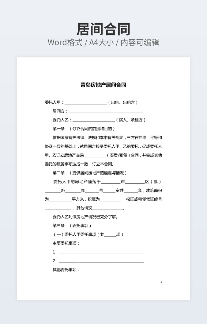 本作品内容为房屋居间合同范本20XX下载,大小为24KB,作品为高清大图模板,格式为docx, 属于居间合同模板,作品模板源文件下载后可用编辑替换,模板中如有人物画像仅供参考禁止商用。小Q办公网-提供简历,PPT,Word,Excel优质模板素材下载模版平台,拥有海量的工作总结、竞聘求职、年终颁奖、计划书等。 通过小Q办公网下载居间合同模板源文件编辑修改源文件文字和图片即可使用。