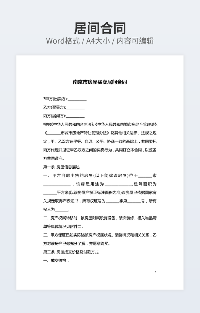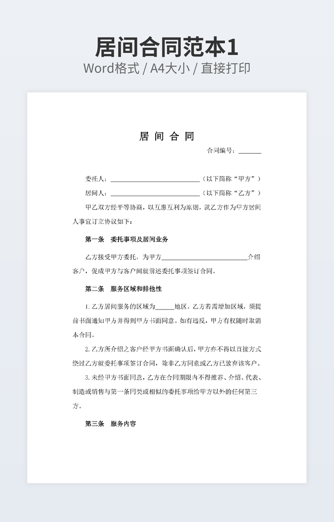 本作品内容为青岛市房地产居间合同下载,大小为21KB,作品为高清大图模板,格式为docx, 属于居间合同模板,作品模板源文件下载后可用编辑替换,模板中如有人物画像仅供参考禁止商用。小Q办公网-提供简历,PPT,Word,Excel优质模板素材下载模版平台,拥有海量的工作总结、竞聘求职、年终颁奖、计划书等。 通过小Q办公网下载居间合同模板源文件编辑修改源文件文字和图片即可使用。