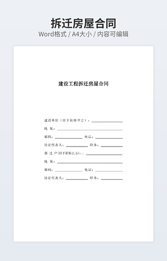 【特殊限制】设计师仅对作品中独创性部分享有著作权,对作品中含有的国旗、国徽等政治图案不享有权利,仅作为作品整体效果的示例展示,禁止商用。 相关关键词: 房屋拆迁 补偿 安置 合同