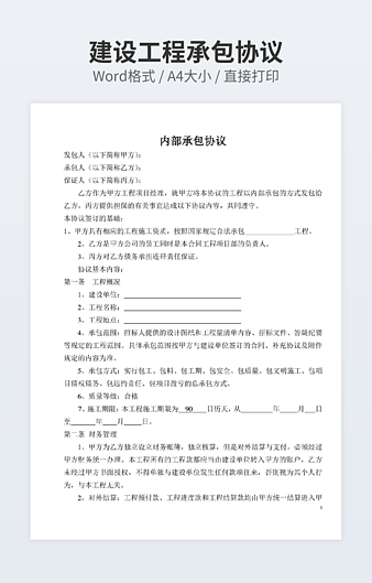 本作品内容为工程施工项目合伙承包协议书模板下载,大小为40KB,作品为高清大图模板,格式为doc, 属于承包合同模板,作品模板源文件下载后可用编辑替换,模板中如有人物画像仅供参考禁止商用。小Q办公网-提供简历,PPT,Word,Excel优质模板素材下载模版平台,拥有海量的工作总结、竞聘求职、年终颁奖、计划书等。 通过小Q办公网下载承包合同模板源文件编辑修改源文件文字和图片即可使用。