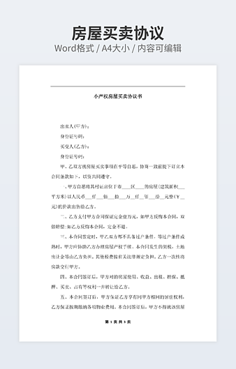本作品内容为房屋买卖协议书下载,大小为19.25KB,作品为高清大图模板,格式为docx, 属于房屋买卖模板,作品模板源文件下载后可用编辑替换,模板中如有人物画像仅供参考禁止商用。小Q办公网-提供简历,PPT,Word,Excel优质模板素材下载模版平台,拥有海量的工作总结、竞聘求职、年终颁奖、计划书等。 通过小Q办公网下载房屋买卖模板源文件编辑修改源文件文字和图片即可使用。