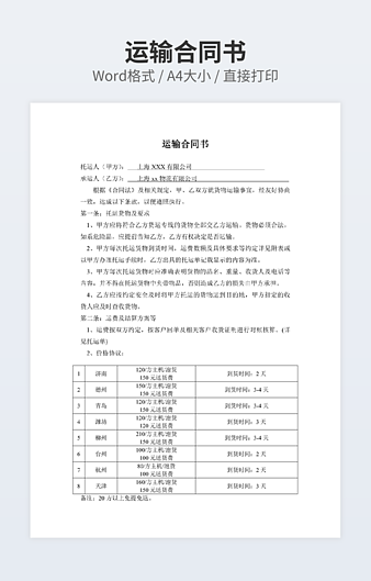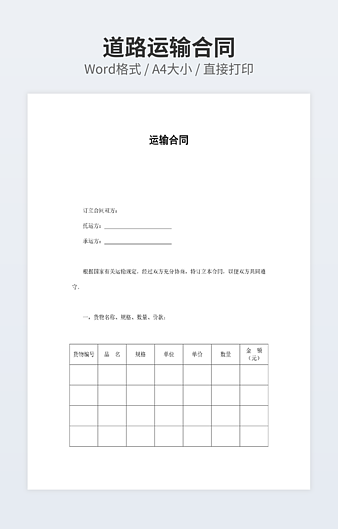 本作品内容为铁路运输合同(物品清单)下载,大小为35KB,作品为高清大图模板,格式为doc, 属于运输合同模板,作品模板源文件下载后可用编辑替换,模板中如有人物画像仅供参考禁止商用。小Q办公网-提供简历,PPT,Word,Excel优质模板素材下载模版平台,拥有海量的工作总结、竞聘求职、年终颁奖、计划书等。 通过小Q办公网下载运输合同模板源文件编辑修改源文件文字和图片即可使用。