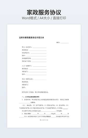 上一篇:宁波市家政服务合同试行范本(适用于员工制家庭保洁服务)下一篇:家政服务合同为您推荐