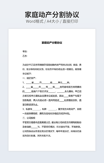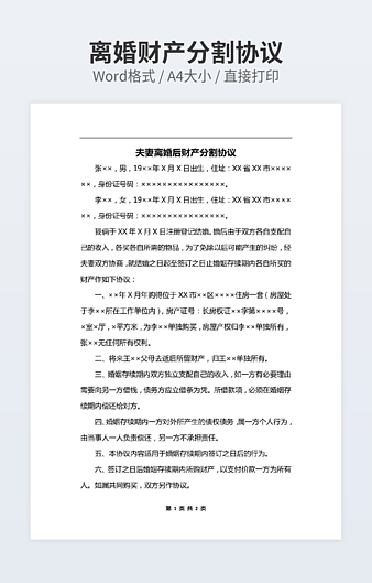 本作品内容为婚内财产分割协议公证下载,大小为20.5KB,作品为高清大图模板,格式为docx, 属于财产分割模板,作品模板源文件下载后可用编辑替换,模板中如有人物画像仅供参考禁止商用。小Q办公网-提供简历,PPT,Word,Excel优质模板素材下载模版平台,拥有海量的工作总结、竞聘求职、年终颁奖、计划书等。 通过小Q办公网下载财产分割模板源文件编辑修改源文件文字和图片即可使用。
