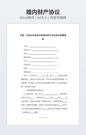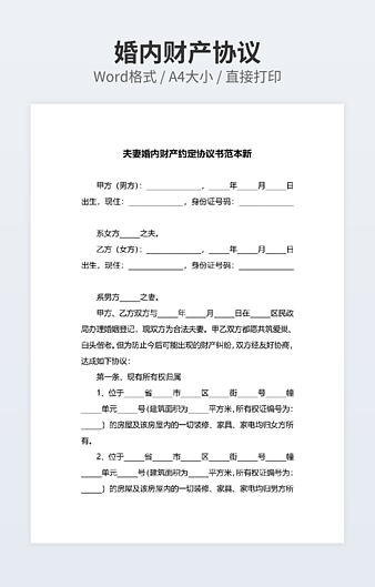 【特殊限制】设计师仅对作品中独创性部分享有著作权,对作品中含有的国旗、国徽等政治图案不享有权利,仅作为作品整体效果的示例展示,禁止商用。 相关关键词: 婚内 财产 分割 协议 公证