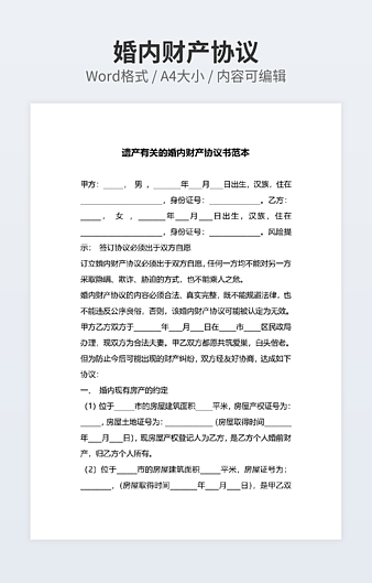本作品内容为老人房屋财产分割协议书下载,大小为20.99KB,作品为高清大图模板,格式为docx, 属于财产分割模板,作品模板源文件下载后可用编辑替换,模板中如有人物画像仅供参考禁止商用。小Q办公网-提供简历,PPT,Word,Excel优质模板素材下载模版平台,拥有海量的工作总结、竞聘求职、年终颁奖、计划书等。 通过小Q办公网下载财产分割模板源文件编辑修改源文件文字和图片即可使用。
