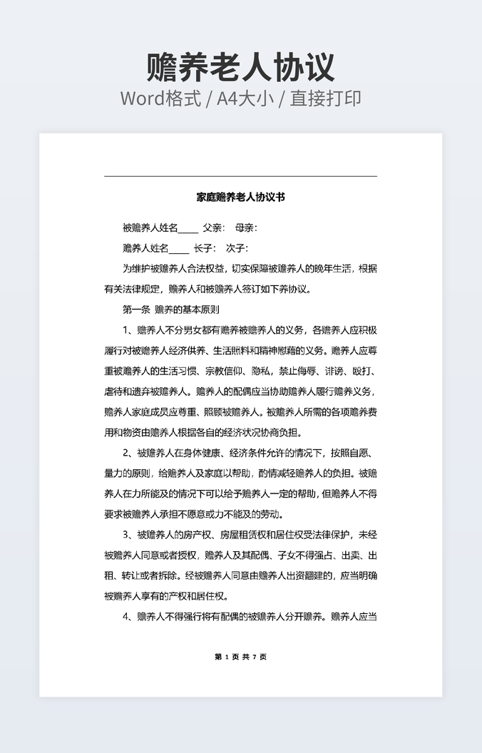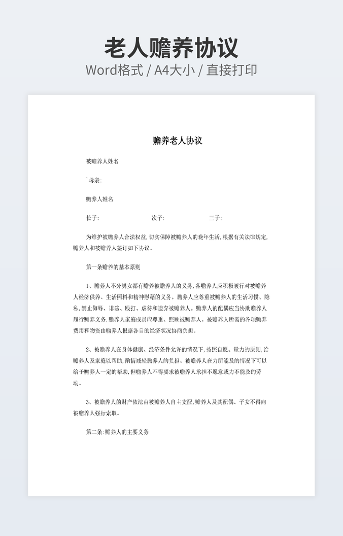 【特殊限制】设计师仅对作品中独创性部分享有著作权,对作品中含有的国旗、国徽等政治图案不享有权利,仅作为作品整体效果的示例展示,禁止商用。 相关关键词: 赡养 老人 财产 继承 协议