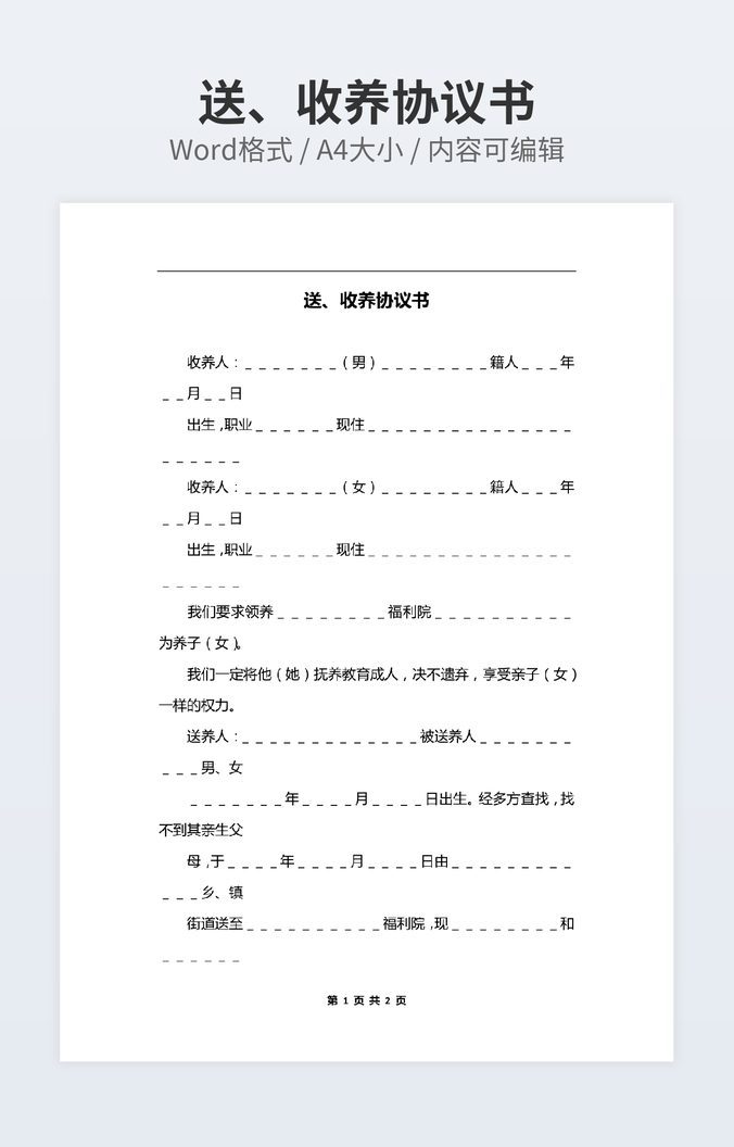上一篇:赡养老人协议书范本下一篇:送、收养协议书为您推荐