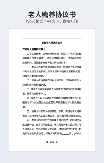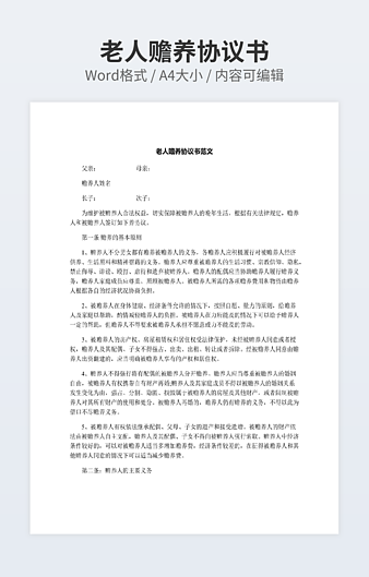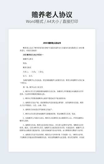 【特殊限制】设计师仅对作品中独创性部分享有著作权,对作品中含有的国旗、国徽等政治图案不享有权利,仅作为作品整体效果的示例展示,禁止商用。 相关关键词: 老人 赡养 协议