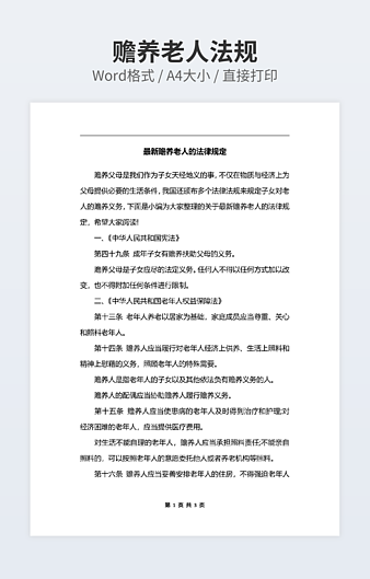 【特殊限制】设计师仅对作品中独创性部分享有著作权,对作品中含有的国旗、国徽等政治图案不享有权利,仅作为作品整体效果的示例展示,禁止商用。 相关关键词: 老人 赡养 协议书 范文