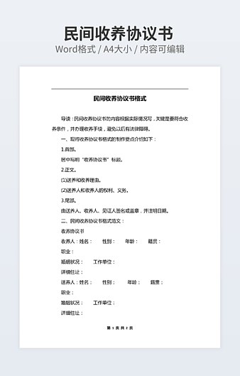 【特殊限制】设计师仅对作品中独创性部分享有著作权,对作品中含有的国旗、国徽等政治图案不享有权利,仅作为作品整体效果的示例展示,禁止商用。 相关关键词: 收养 协议书