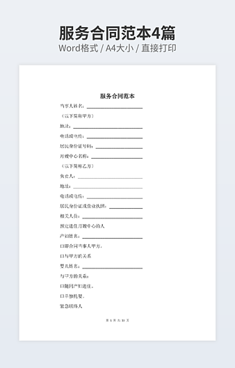 本作品内容为家政服务合同下载,大小为49KB,作品为高清大图模板,格式为doc, 属于服务合同模板,作品模板源文件下载后可用编辑替换,模板中如有人物画像仅供参考禁止商用。小Q办公网-提供简历,PPT,Word,Excel优质模板素材下载模版平台,拥有海量的工作总结、竞聘求职、年终颁奖、计划书等。 通过小Q办公网下载服务合同模板源文件编辑修改源文件文字和图片即可使用。
