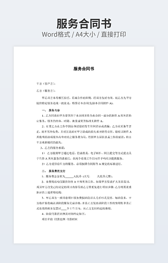 本作品内容为商家服务协议合同_商家服务协议格式下载,大小为22.84KB,作品为高清大图模板,格式为docx, 属于服务合同模板,作品模板源文件下载后可用编辑替换,模板中如有人物画像仅供参考禁止商用。小Q办公网-提供简历,PPT,Word,Excel优质模板素材下载模版平台,拥有海量的工作总结、竞聘求职、年终颁奖、计划书等。 通过小Q办公网下载服务合同模板源文件编辑修改源文件文字和图片即可使用。