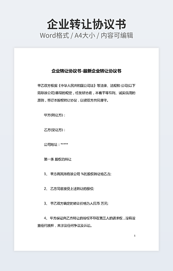 【特殊限制】设计师仅对作品中独创性部分享有著作权,对作品中含有的国旗、国徽等政治图案不享有权利,仅作为作品整体效果的示例展示,禁止商用。 相关关键词: 个体 工商户 转让 协议书