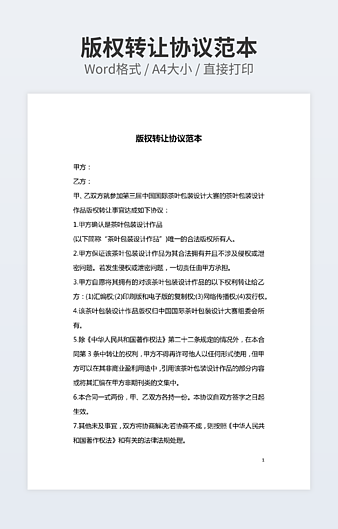 【特殊限制】设计师仅对作品中独创性部分享有著作权,对作品中含有的国旗、国徽等政治图案不享有权利,仅作为作品整体效果的示例展示,禁止商用。 相关关键词: 房屋出租 转让 协议 范本
