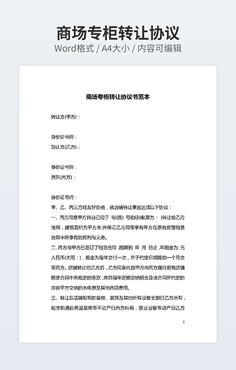 本作品内容为房屋出租转让协议范本下载,大小为20.12KB,作品为高清大图模板,格式为docx, 属于转让合同模板,作品模板源文件下载后可用编辑替换,模板中如有人物画像仅供参考禁止商用。小Q办公网-提供简历,PPT,Word,Excel优质模板素材下载模版平台,拥有海量的工作总结、竞聘求职、年终颁奖、计划书等。 通过小Q办公网下载转让合同模板源文件编辑修改源文件文字和图片即可使用。