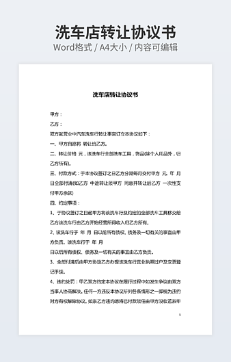 本作品内容为修理厂转让协议下载,大小为19.63KB,作品为高清大图模板,格式为docx, 属于转让合同模板,作品模板源文件下载后可用编辑替换,模板中如有人物画像仅供参考禁止商用。小Q办公网-提供简历,PPT,Word,Excel优质模板素材下载模版平台,拥有海量的工作总结、竞聘求职、年终颁奖、计划书等。 通过小Q办公网下载转让合同模板源文件编辑修改源文件文字和图片即可使用。