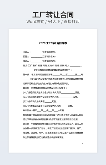 本作品内容为洗车店转让协议书下载,大小为19.95KB,作品为高清大图模板,格式为docx, 属于转让合同模板,作品模板源文件下载后可用编辑替换,模板中如有人物画像仅供参考禁止商用。小Q办公网-提供简历,PPT,Word,Excel优质模板素材下载模版平台,拥有海量的工作总结、竞聘求职、年终颁奖、计划书等。 通过小Q办公网下载转让合同模板源文件编辑修改源文件文字和图片即可使用。