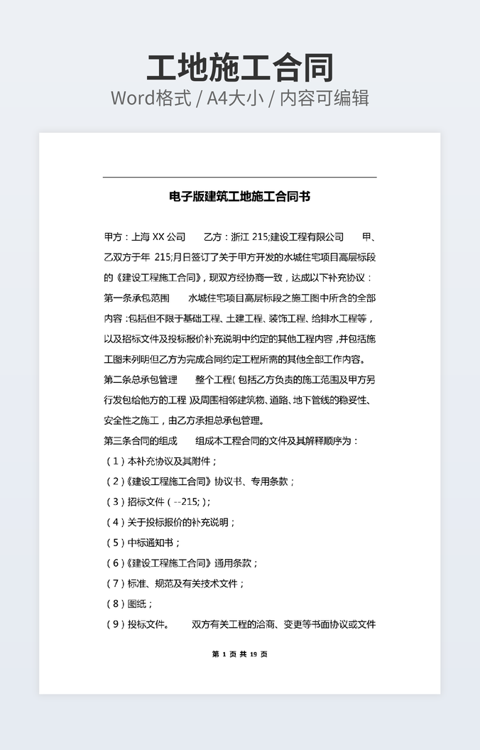 【特殊限制】设计师仅对作品中独创性部分享有著作权,对作品中含有的国旗、国徽等政治图案不享有权利,仅作为作品整体效果的示例展示,禁止商用。 相关关键词: 工程 工程施工 施工图 审查 合同范本 专业版