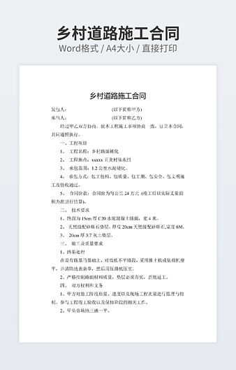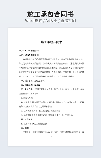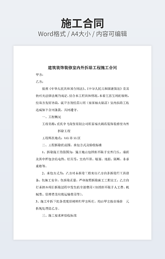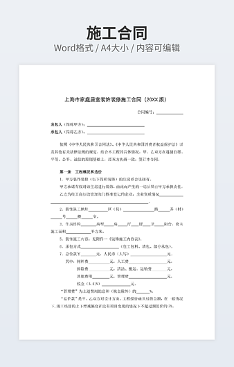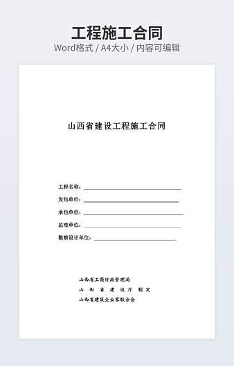 【特殊限制】设计师仅对作品中独创性部分享有著作权,对作品中含有的国旗、国徽等政治图案不享有权利,仅作为作品整体效果的示例展示,禁止商用。 相关关键词: 工程施工 合同书 模板