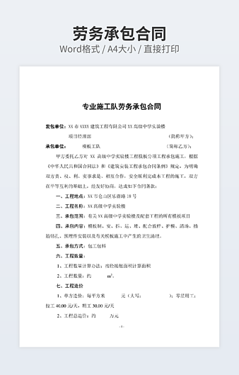 【特殊限制】设计师仅对作品中独创性部分享有著作权,对作品中含有的国旗、国徽等政治图案不享有权利,仅作为作品整体效果的示例展示,禁止商用。 相关关键词: 建设 工程施工 承包 合同书 模板 经典