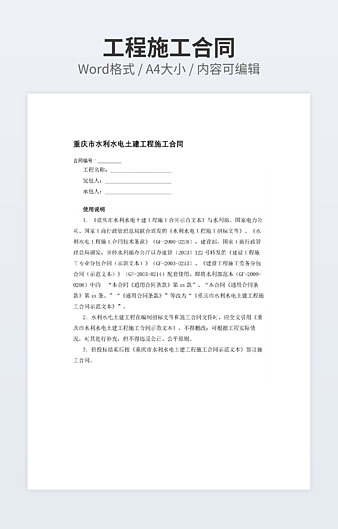 本作品内容为人防门制作、安装工程施工合同书范本下载,大小为25.61KB,作品为高清大图模板,格式为docx, 属于施工合同模板,作品模板源文件下载后可用编辑替换,模板中如有人物画像仅供参考禁止商用。小Q办公网-提供简历,PPT,Word,Excel优质模板素材下载模版平台,拥有海量的工作总结、竞聘求职、年终颁奖、计划书等。 通过小Q办公网下载施工合同模板源文件编辑修改源文件文字和图片即可使用。