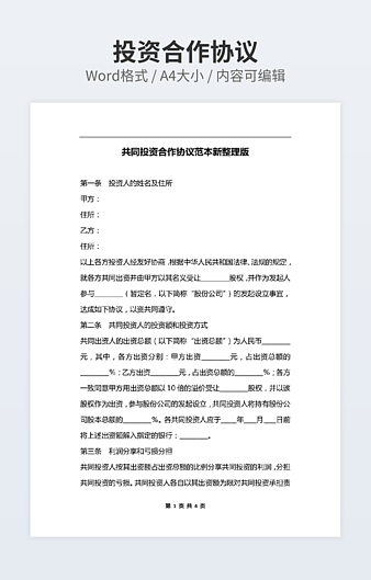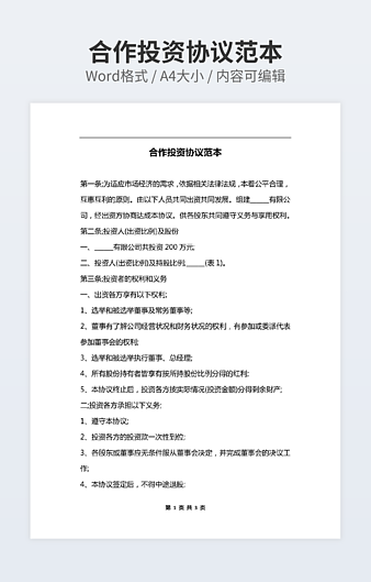【特殊限制】设计师仅对作品中独创性部分享有著作权,对作品中含有的国旗、国徽等政治图案不享有权利,仅作为作品整体效果的示例展示,禁止商用。 相关关键词: 股权 投资合作 协议书 范文