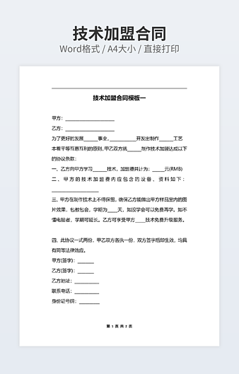 本作品内容为技术合作合同书(玉米项目)下载,大小为20.59KB,作品为高清大图模板,格式为docx, 属于技术合作模板,作品模板源文件下载后可用编辑替换,模板中如有人物画像仅供参考禁止商用。小Q办公网-提供简历,PPT,Word,Excel优质模板素材下载模版平台,拥有海量的工作总结、竞聘求职、年终颁奖、计划书等。 通过小Q办公网下载技术合作模板源文件编辑修改源文件文字和图片即可使用。