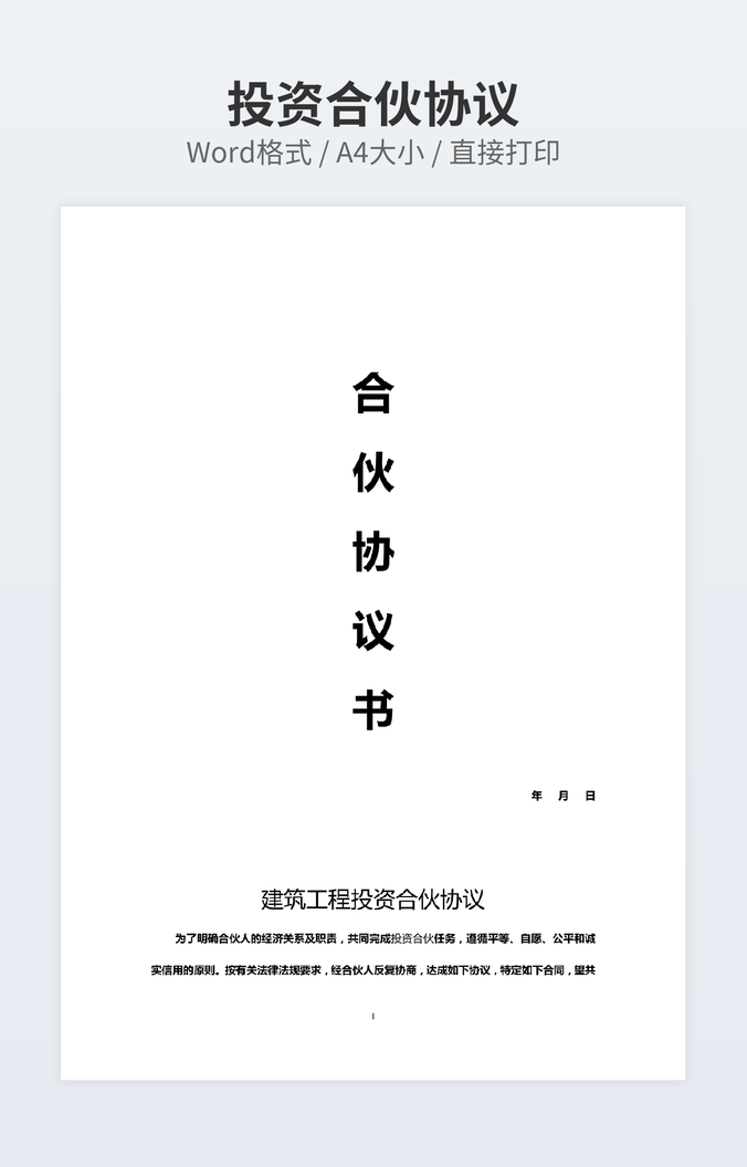 【特殊限制】设计师仅对作品中独创性部分享有著作权,对作品中含有的国旗、国徽等政治图案不享有权利,仅作为作品整体效果的示例展示,禁止商用。 相关关键词: 企业 合伙 协议书 样本