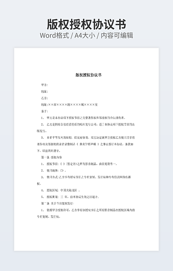 【特殊限制】设计师仅对作品中独创性部分享有著作权,对作品中含有的国旗、国徽等政治图案不享有权利,仅作为作品整体效果的示例展示,禁止商用。 相关关键词: 肖像 版权 协议书
