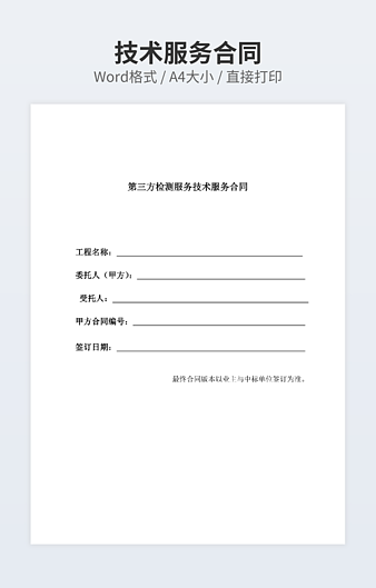 本作品内容为加工贸易申报系统技术服务协议下载,大小为21.32KB,作品为高清大图模板,格式为docx, 属于技术服务模板,作品模板源文件下载后可用编辑替换,模板中如有人物画像仅供参考禁止商用。小Q办公网-提供简历,PPT,Word,Excel优质模板素材下载模版平台,拥有海量的工作总结、竞聘求职、年终颁奖、计划书等。 通过小Q办公网下载技术服务模板源文件编辑修改源文件文字和图片即可使用。
