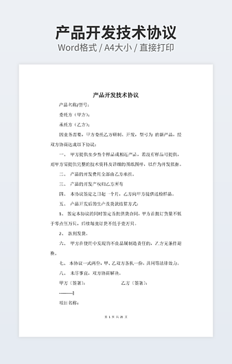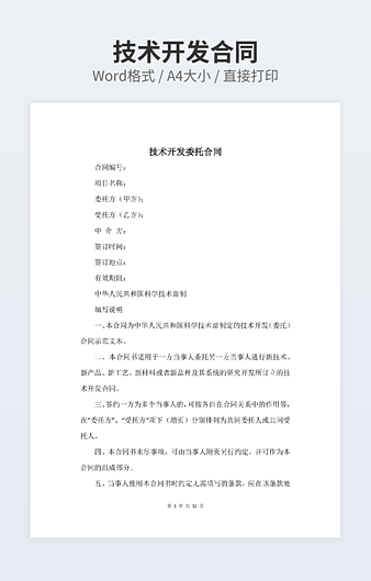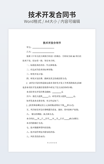 本作品内容为技术开发合同法下载,大小为25.98KB,作品为高清大图模板,格式为docx, 属于技术开发模板,作品模板源文件下载后可用编辑替换,模板中如有人物画像仅供参考禁止商用。小Q办公网-提供简历,PPT,Word,Excel优质模板素材下载模版平台,拥有海量的工作总结、竞聘求职、年终颁奖、计划书等。 通过小Q办公网下载技术开发模板源文件编辑修改源文件文字和图片即可使用。