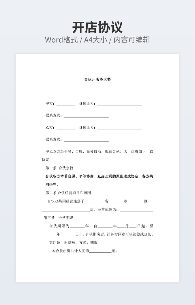 【特殊限制】设计师仅对作品中独创性部分享有著作权,对作品中含有的国旗、国徽等政治图案不享有权利,仅作为作品整体效果的示例展示,禁止商用。 相关关键词: 公司 合作 合伙 协议书