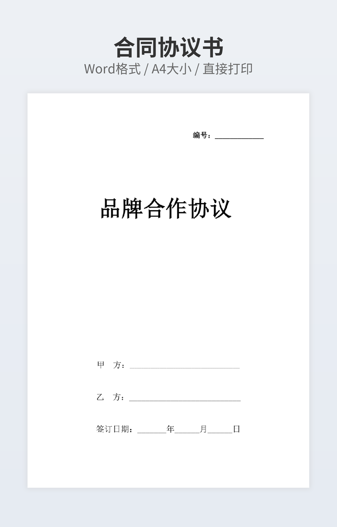 【特殊限制】设计师仅对作品中独创性部分享有著作权,对作品中含有的国旗、国徽等政治图案不享有权利,仅作为作品整体效果的示例展示,禁止商用。 相关关键词: 技术合作 协议书