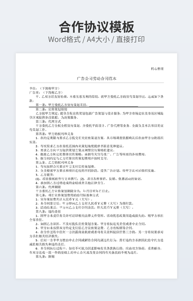 本作品内容为与银行合作协议下载,大小为28.5KB,作品为高清大图模板,格式为doc, 属于合伙协议模板,作品模板源文件下载后可用编辑替换,模板中如有人物画像仅供参考禁止商用。小Q办公网-提供简历,PPT,Word,Excel优质模板素材下载模版平台,拥有海量的工作总结、竞聘求职、年终颁奖、计划书等。 通过小Q办公网下载合伙协议模板源文件编辑修改源文件文字和图片即可使用。