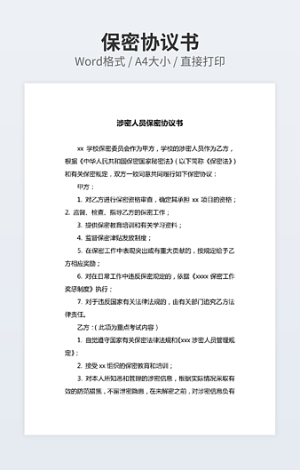 【特殊限制】设计师仅对作品中独创性部分享有著作权,对作品中含有的国旗、国徽等政治图案不享有权利,仅作为作品整体效果的示例展示,禁止商用。 相关关键词: 新员工 员工 保密 协议书