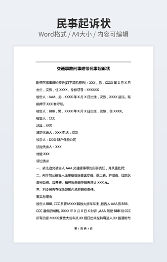 【特殊限制】设计师仅对作品中独创性部分享有著作权,对作品中含有的国旗、国徽等政治图案不享有权利,仅作为作品整体效果的示例展示,禁止商用。 相关关键词: 借款 起诉状 范本