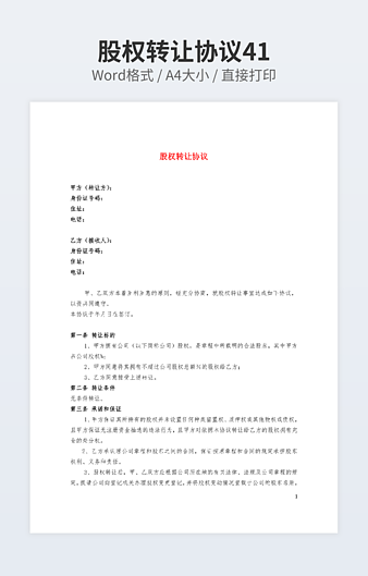 本作品内容为房地产项目收购股权转让合同协议书范本下载,大小为25.97KB,作品为高清大图模板,格式为docx, 属于股权转让模板,作品模板源文件下载后可用编辑替换,模板中如有人物画像仅供参考禁止商用。小Q办公网-提供简历,PPT,Word,Excel优质模板素材下载模版平台,拥有海量的工作总结、竞聘求职、年终颁奖、计划书等。 通过小Q办公网下载股权转让模板源文件编辑修改源文件文字和图片即可使用。