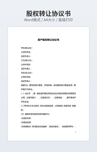 【特殊限制】设计师仅对作品中独创性部分享有著作权,对作品中含有的国旗、国徽等政治图案不享有权利,仅作为作品整体效果的示例展示,禁止商用。 相关关键词: 股权转让 协议
