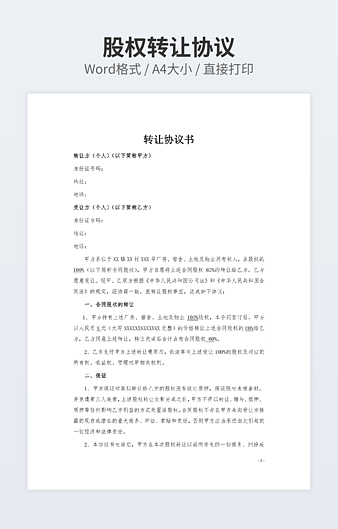 【特殊限制】设计师仅对作品中独创性部分享有著作权,对作品中含有的国旗、国徽等政治图案不享有权利,仅作为作品整体效果的示例展示,禁止商用。 相关关键词: 股权转让 协议