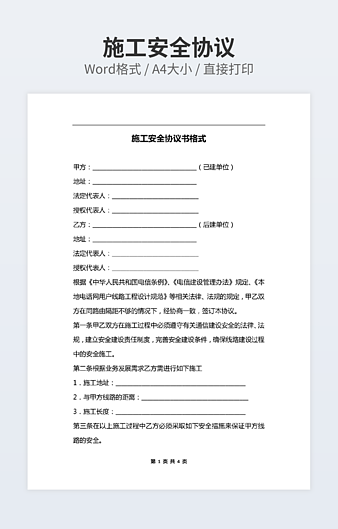 【特殊限制】设计师仅对作品中独创性部分享有著作权,对作品中含有的国旗、国徽等政治图案不享有权利,仅作为作品整体效果的示例展示,禁止商用。 相关关键词: 工程施工 安全 协议书 范文