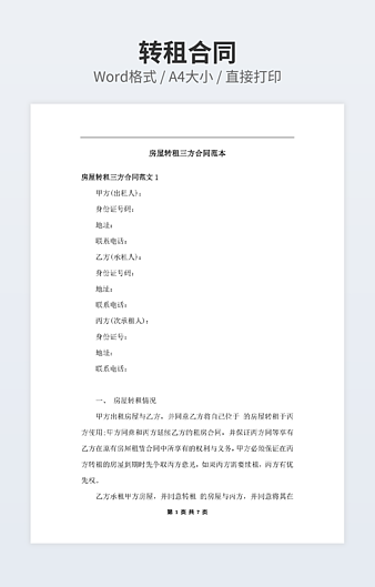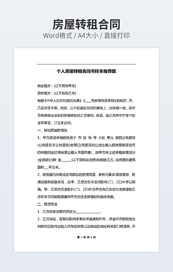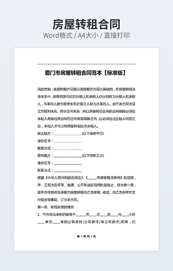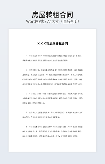 【特殊限制】设计师仅对作品中独创性部分享有著作权,对作品中含有的国旗、国徽等政治图案不享有权利,仅作为作品整体效果的示例展示,禁止商用。 相关关键词: 房屋 转租 合同 样式