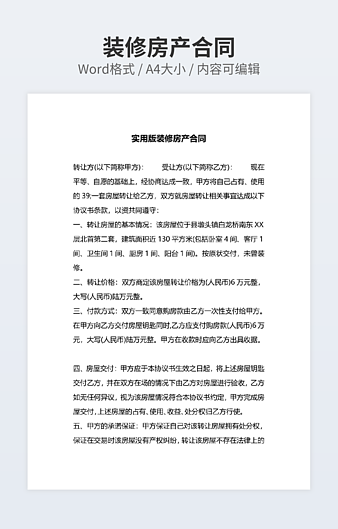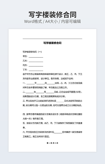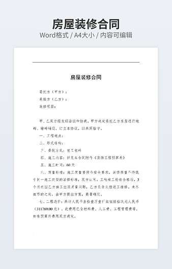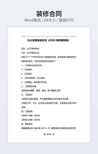 本作品内容为住宅装修管理协议下载,大小为22.37KB,作品为高清大图模板,格式为docx, 属于房屋装修模板,作品模板源文件下载后可用编辑替换,模板中如有人物画像仅供参考禁止商用。小Q办公网-提供简历,PPT,Word,Excel优质模板素材下载模版平台,拥有海量的工作总结、竞聘求职、年终颁奖、计划书等。 通过小Q办公网下载房屋装修模板源文件编辑修改源文件文字和图片即可使用。