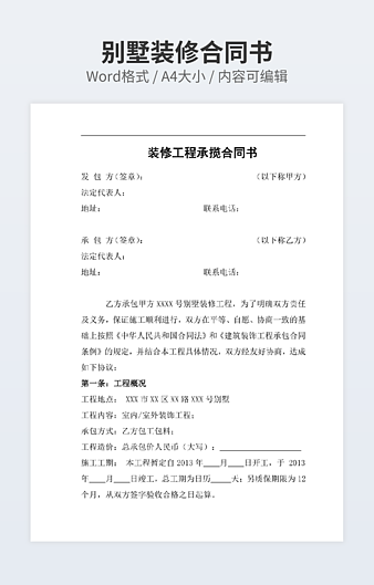 本作品内容为会议室装修合同下载,大小为34.11KB,作品为高清大图模板,格式为docx, 属于房屋装修模板,作品模板源文件下载后可用编辑替换,模板中如有人物画像仅供参考禁止商用。小Q办公网-提供简历,PPT,Word,Excel优质模板素材下载模版平台,拥有海量的工作总结、竞聘求职、年终颁奖、计划书等。 通过小Q办公网下载房屋装修模板源文件编辑修改源文件文字和图片即可使用。