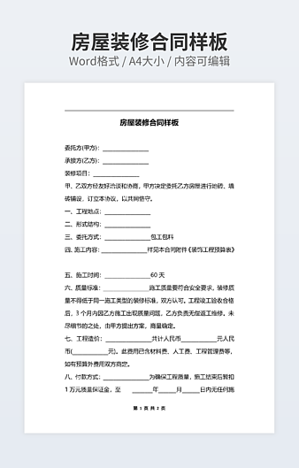 本作品内容为办公楼装修合同下载,大小为76KB,作品为高清大图模板,格式为doc, 属于房屋装修模板,作品模板源文件下载后可用编辑替换,模板中如有人物画像仅供参考禁止商用。小Q办公网-提供简历,PPT,Word,Excel优质模板素材下载模版平台,拥有海量的工作总结、竞聘求职、年终颁奖、计划书等。 通过小Q办公网下载房屋装修模板源文件编辑修改源文件文字和图片即可使用。