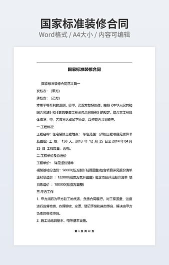 本作品内容为房屋装修合同及预算清单下载,大小为218.5KB,作品为高清大图模板,格式为doc, 属于房屋装修模板,作品模板源文件下载后可用编辑替换,模板中如有人物画像仅供参考禁止商用。小Q办公网-提供简历,PPT,Word,Excel优质模板素材下载模版平台,拥有海量的工作总结、竞聘求职、年终颁奖、计划书等。 通过小Q办公网下载房屋装修模板源文件编辑修改源文件文字和图片即可使用。
